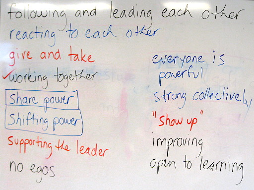 One day a group of musicians shared some ideas on what it takes to create good jazz with students of The Jazz & Democracy Project® (captured in the image to the right ☛)